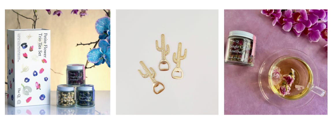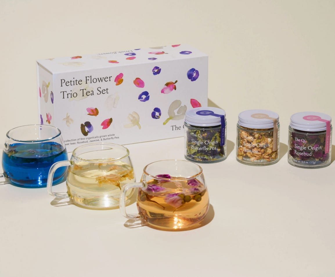 The Qi Petite Flower Trio Tea Set is a lovely offering for an entertainer’s table. They can choose to enjoy a relaxing cup alone, or host a full on tea party. The beautiful aroma and colors of the steeped flower buds takes making tea to a higher level.