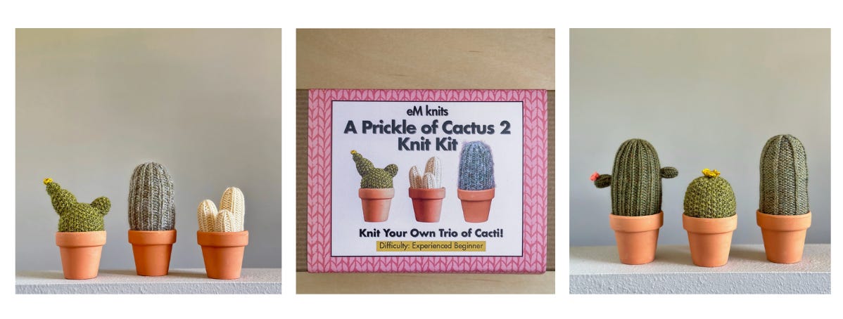 These “Knit Kits” by eM knits make great gifts. They include everything you need to create three different cacti projects (crochet hooks and knitting needles not included), and come in two different styles. Grab your knit kit now.