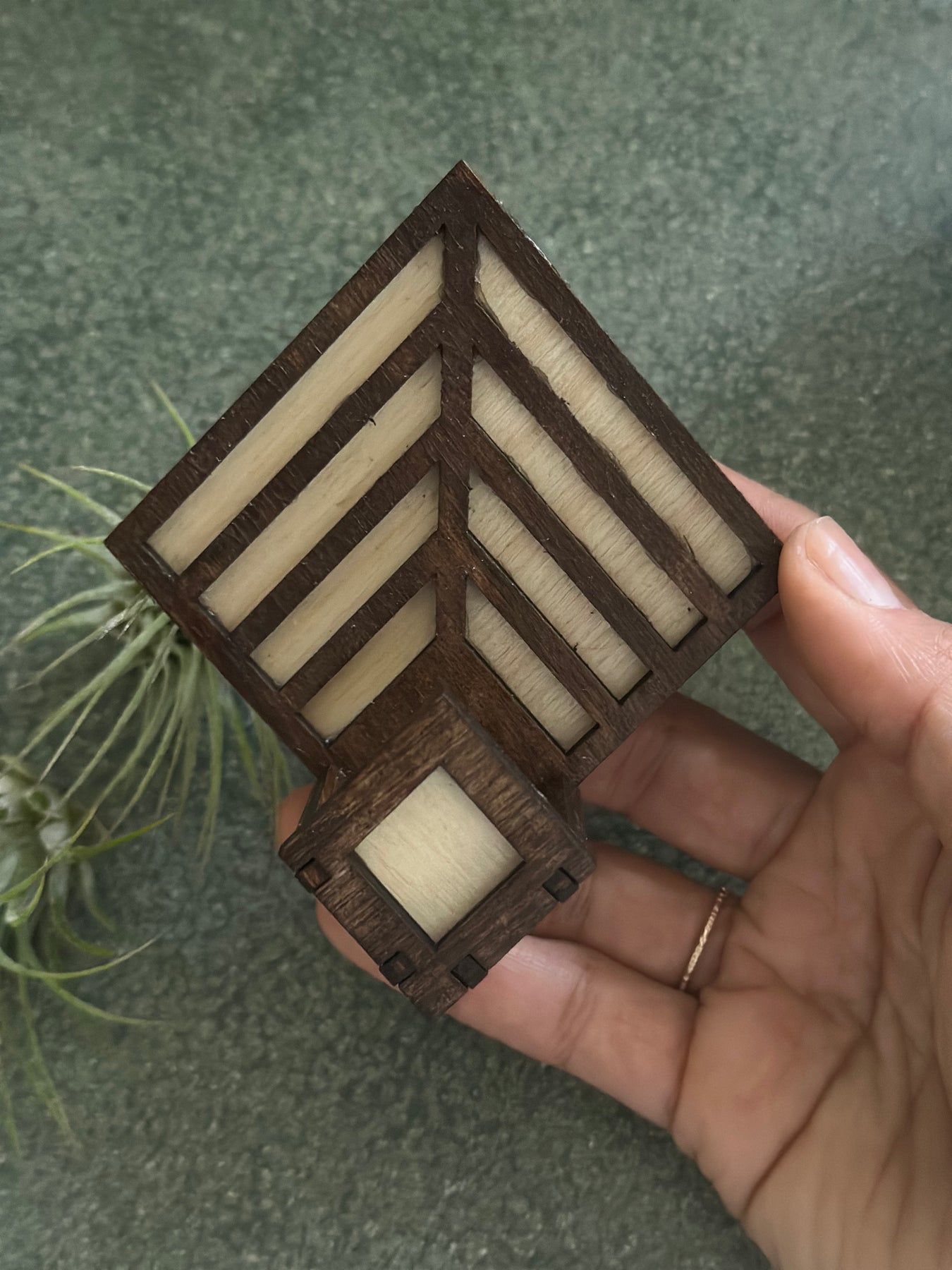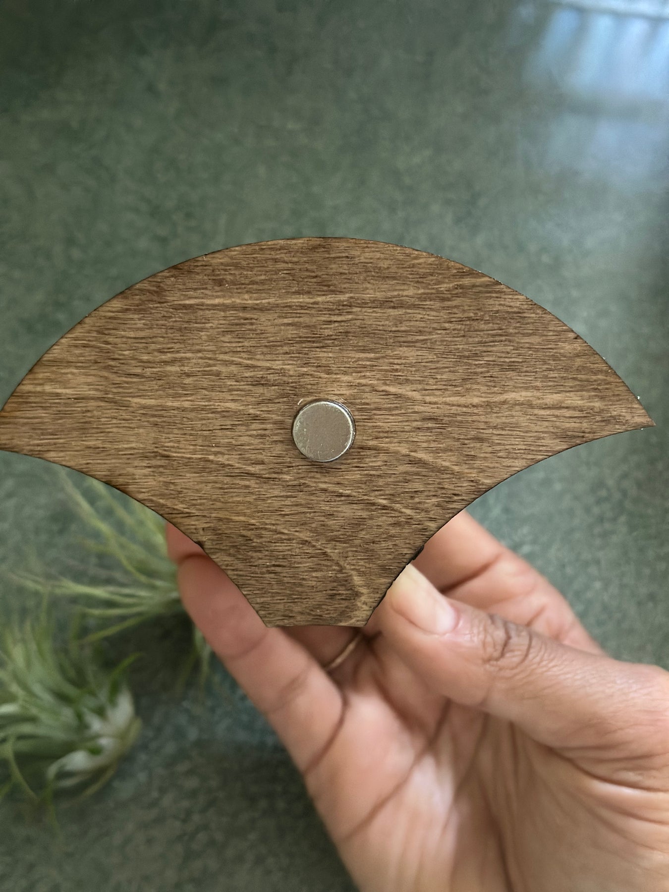 These magnetic holders are laser cut, assembled, and stained right here in Toledo, OH.